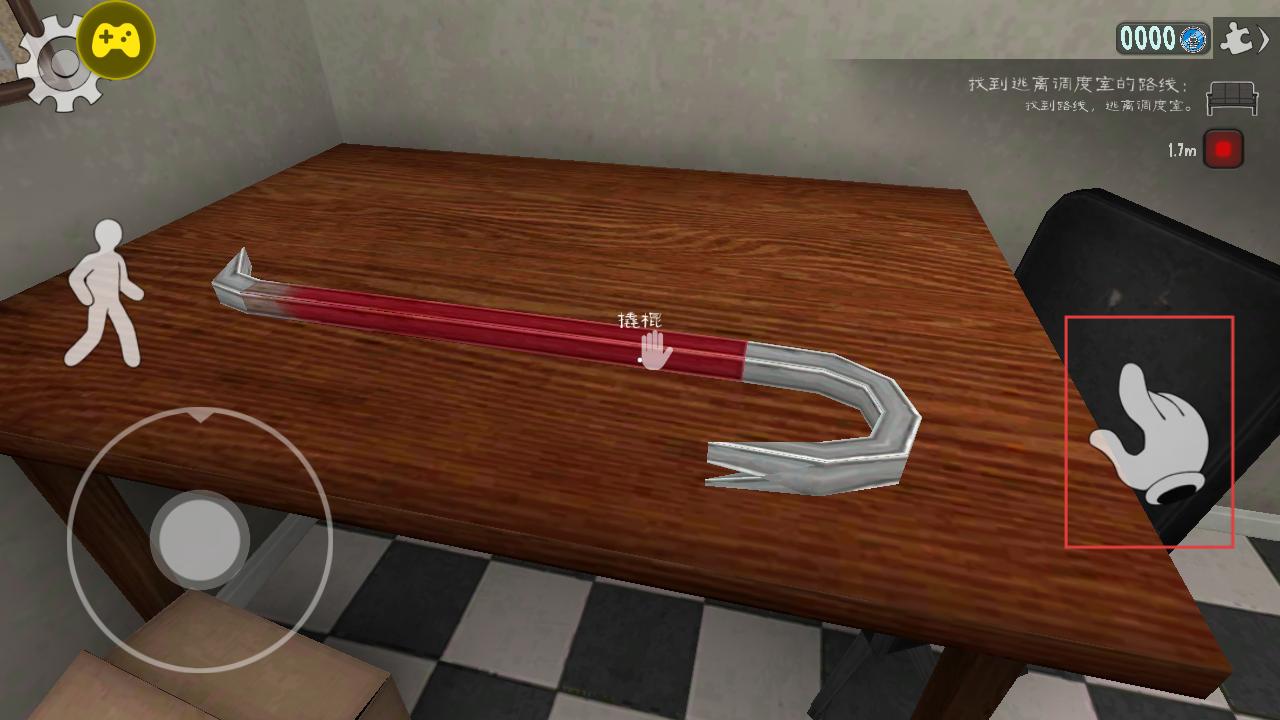 3、在场景中找到撬棍道具,点击拾取,该道具可用于撬开机关或门,是解谜逃生的关键工具,收集后为探索新区域、破解谜题提供帮助。