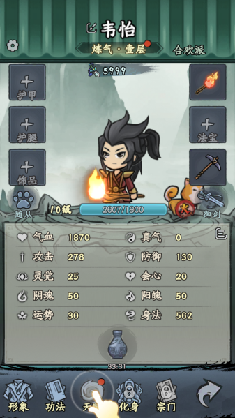 2、多维度修仙养成体系:涵盖功法领悟、法器炼制、妖兽培养、五行专研等多元成长路径。