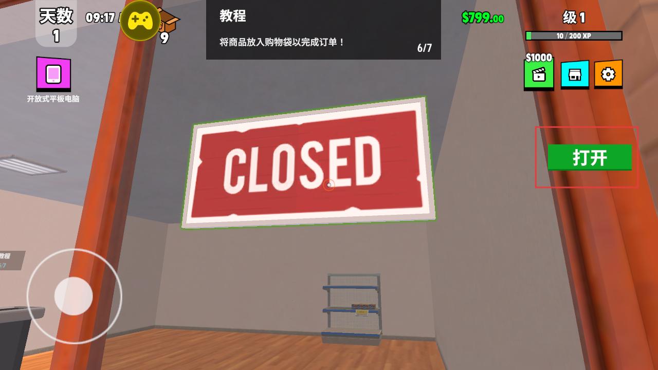 1、店铺门口有CLOSED标志,点击打开按钮开启店铺,准备迎接顾客,正式开启跑车收藏店铺的经营,为销售跑车模型迈出第一步。