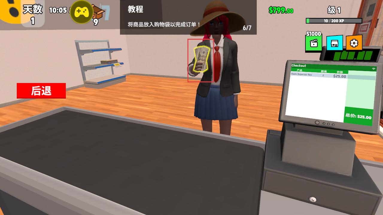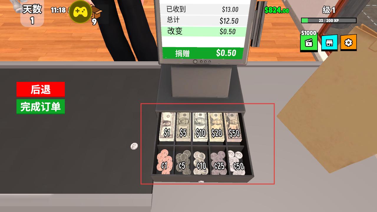 4、收银机内有不同面额的钱和硬币,根据交易金额处理找零,点击完成订单,结束本次销售,积累资金用于扩展跑车收藏和店铺经营。