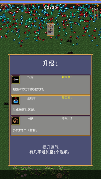 1、初期生存优先:优先拾取经验宝石升级,解锁大蒜、鞭子等范围武器应对初期怪物潮。