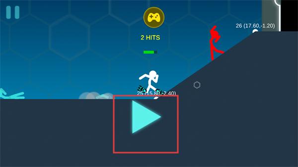 3、遇到地形障碍时,点击前进按钮可操控火柴人跨越,继续在关卡中前进,与不同敌人展开战斗,推进冒险进程。