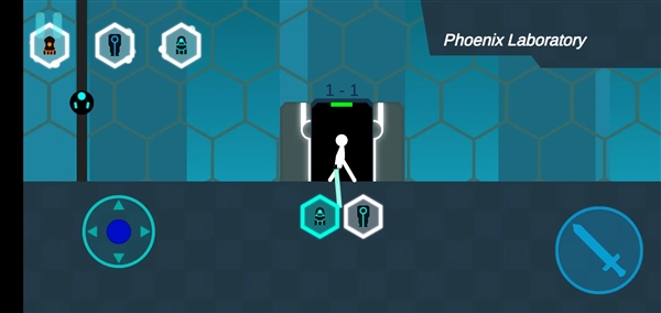 1、进入游戏可看到标有1的关卡选项,点击即可开启冒险,操控火柴人战士在科幻关卡中战斗,逐步揭开背后谜团。