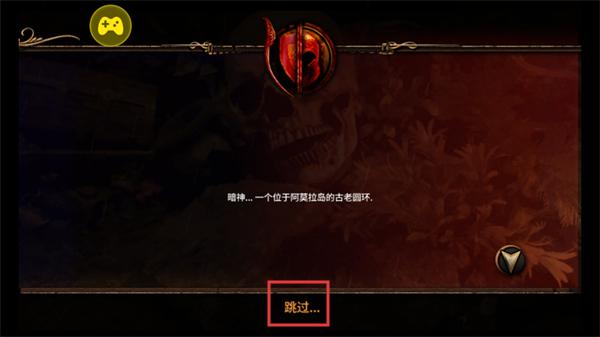 1、点击跳过略过剧情,开启在阿尔莫拉岛的史诗冒险,扮演预言英雄,于奇幻大陆展开对抗黑暗势力的旅程。