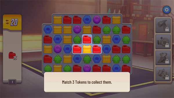 1、策略性三消闯关:4个及以上方块触发火箭、炸弹等道具,道具组合产生连锁效果,助快速达成资源目标,应对复杂关卡。