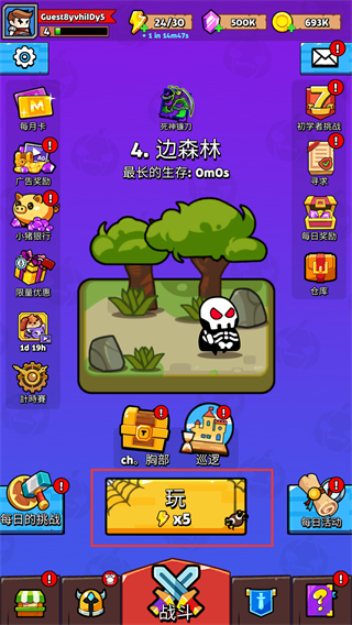 1、在界面点击玩,进入森林场景,开始生存挑战,开启僵尸生存的冒险之旅。