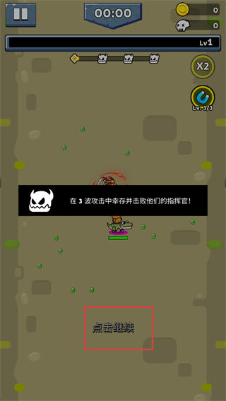 2、点击继续,需在3波攻击中幸存并击败敌方指挥官,开启紧张的生存战斗环节。