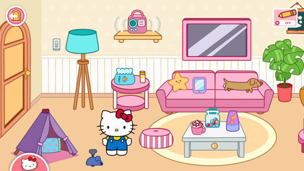 2、点击凯蒂猫,可以让她做动作和变换表情,以及与场景中的物品互动。