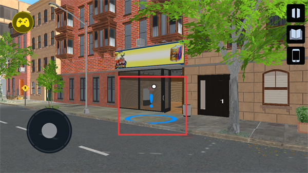 2、操控角色移动到街道上的店铺位置,靠近店铺区域,为开启卡牌超市的经营做好准备,即将踏入经营的第一步。