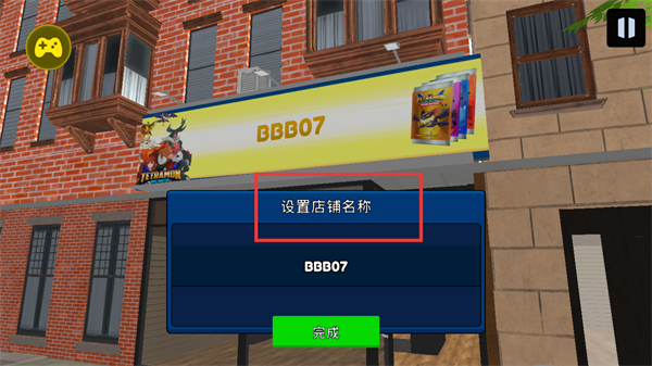 3、进入设置店铺名称界面,可设置如BBB07的店铺名称,点击完成按钮,确定店铺标识,正式开启卡牌超市的经营生涯。