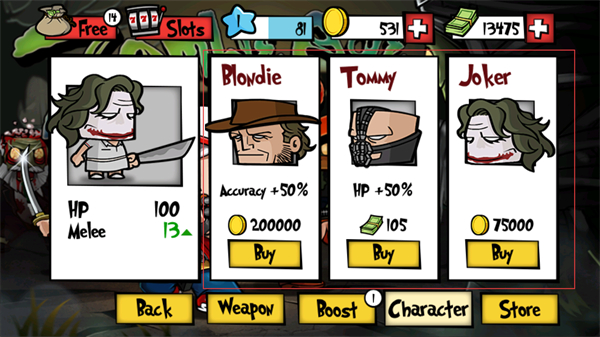 3、在Character界面选择想要购买的角色,比如Blondie,点击Buy按钮解锁该角色,获取其属性加成。