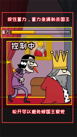 4、长按屏幕让刺客举起武器,找准时机完成刺杀操作,成功篡位成为新的国王。
