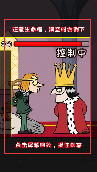 3、当扮演国王时,注意观察生命槽,点击屏幕让国王回头,及时捉住前来行刺的刺客。