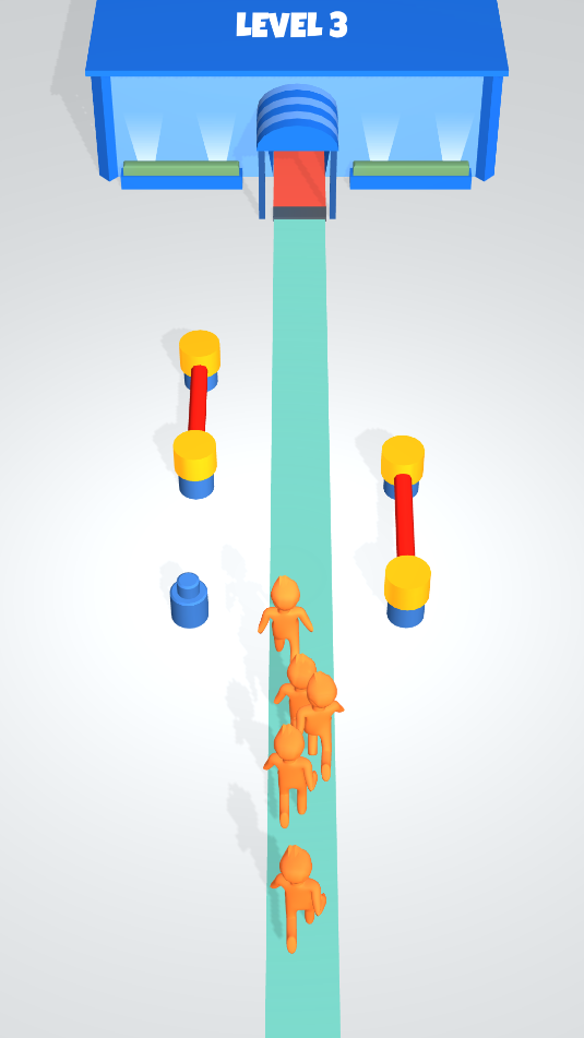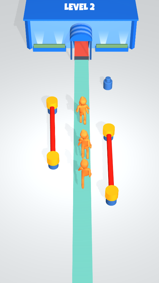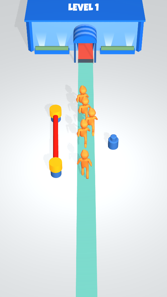 1、游戏是点击拦路绳子一头的扣子,放置在另一个扣子上,使人群可以顺利通过。
