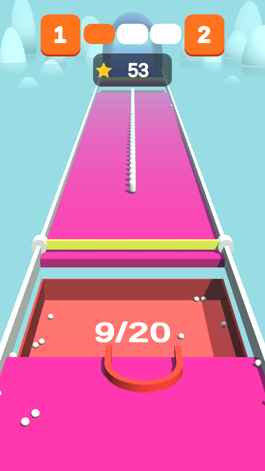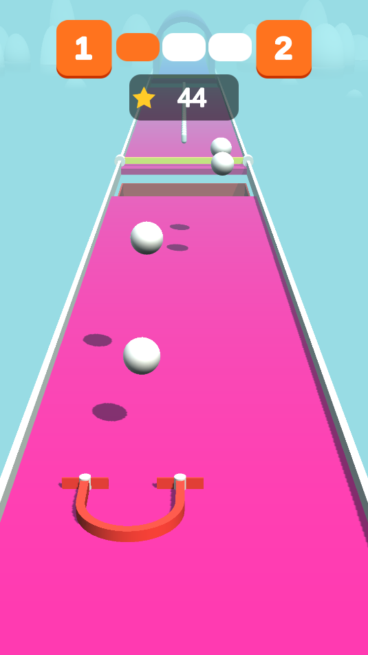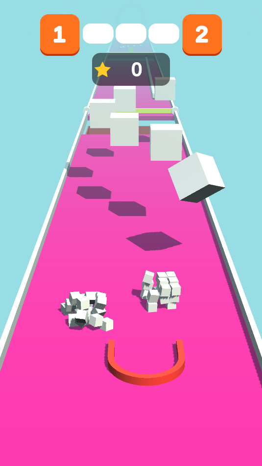 2、游戏中,通过滑动控制U型装置,收集散落的小物品。
