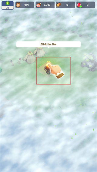 2、按照提示点击营地中的火堆,触发互动,完成对应的操作,推进生存进程。