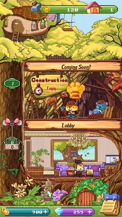 1、点击屏幕选定位置,建造居民屋、商店等建筑。居民屋可容纳动物,商店能产生收益,合理布局,为后续发展打基础。