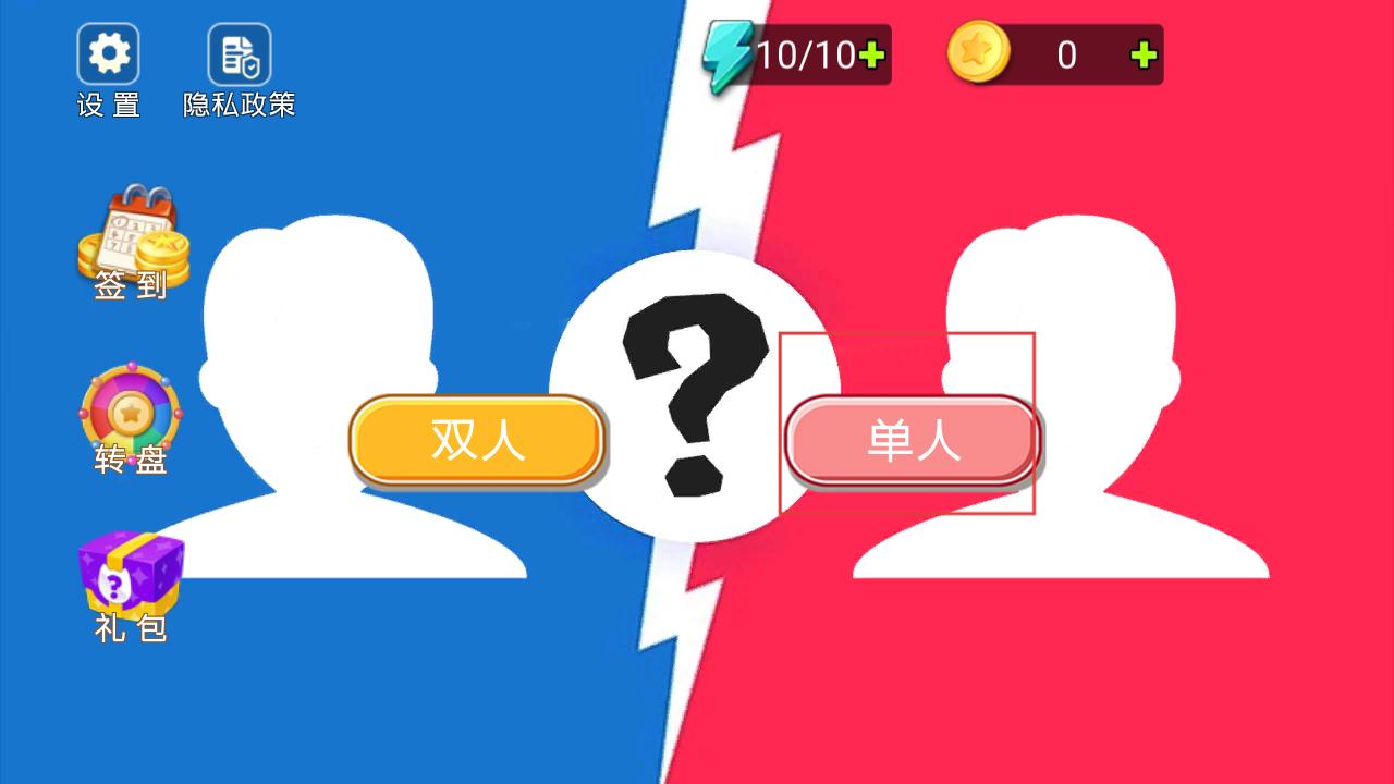 1、进入游戏,可选择单人或双人模式开启挑战,左侧还有设置、签到等功能,能根据需求调整或获取奖励。