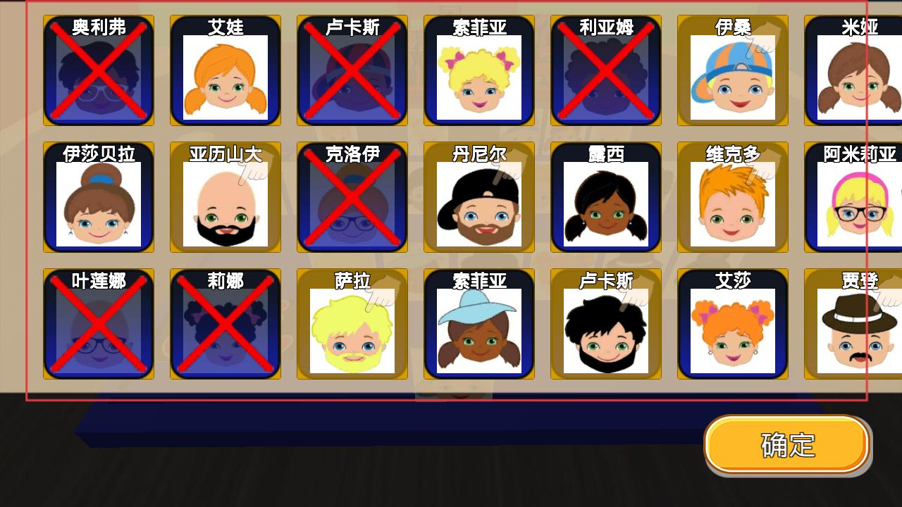 3、接着会看到众多人物头像,部分带有红叉,需仔细观察,选择符合条件的人物,再点击确定。