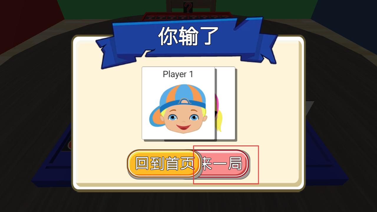 4、若挑战失败,会显示你输了的界面,此时可点击来一局,重新开始挑战,争取下次成功通关。