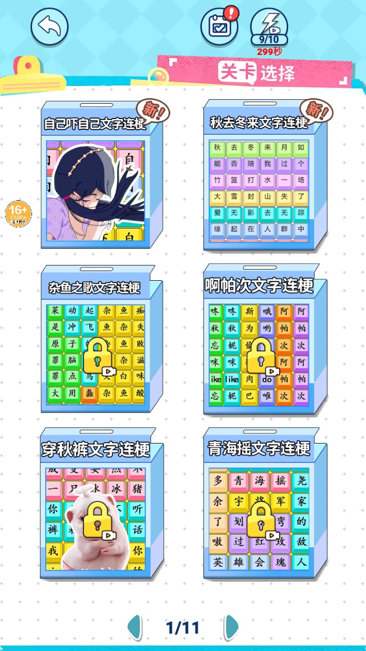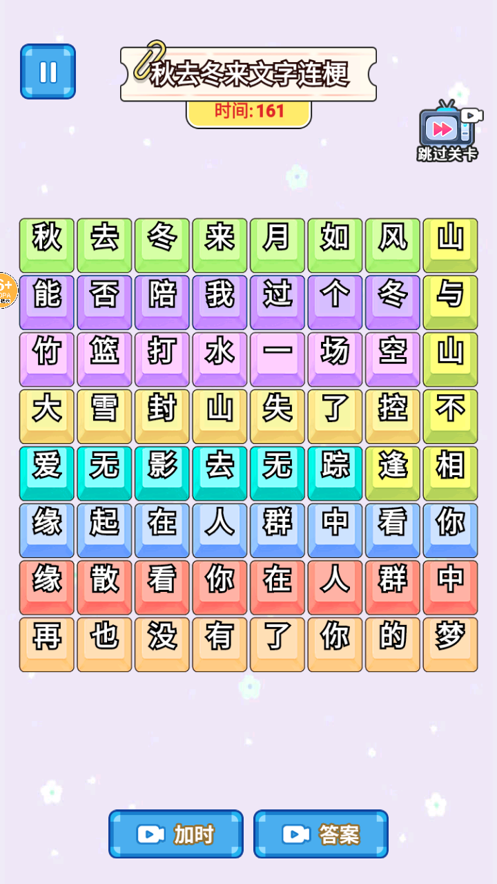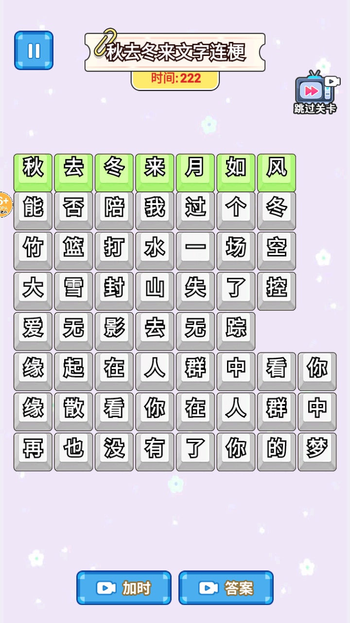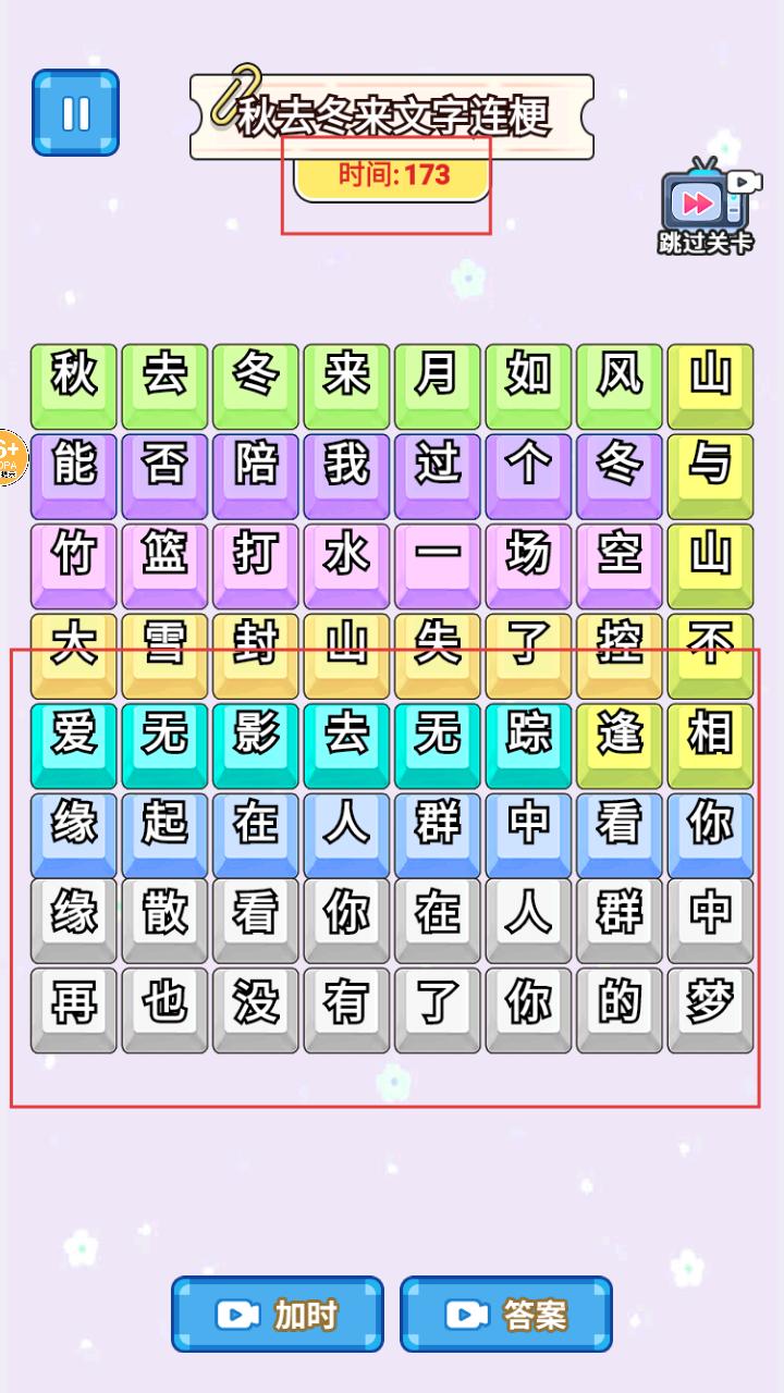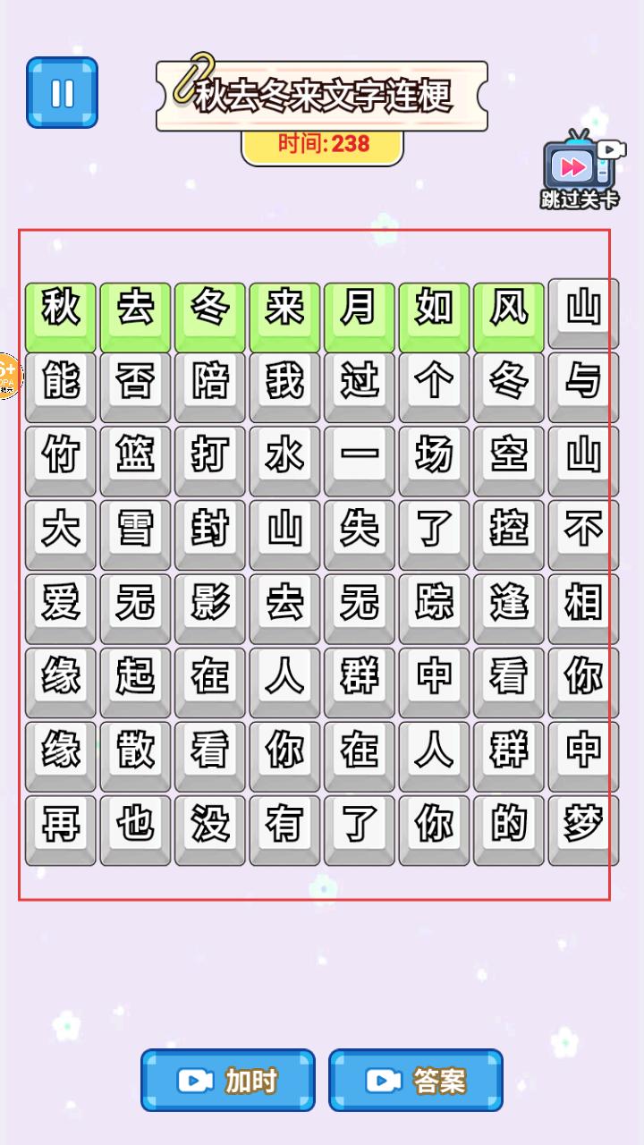 2、游戏开始后,会出现如秋去冬来文字连梗的关卡,需在限定时间内对文字进行操作,完成关卡要求。