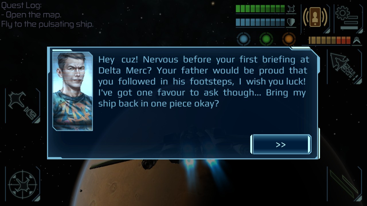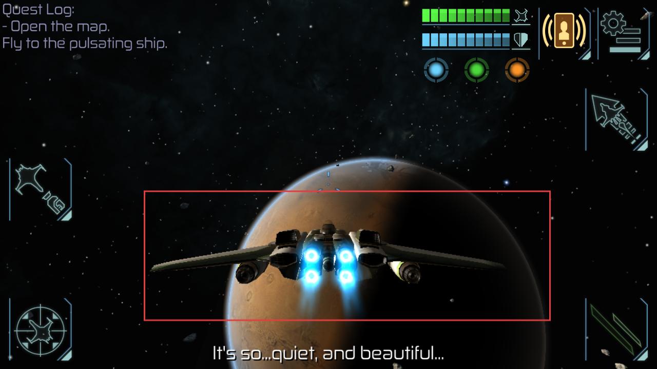 3、进入太空场景,飞船会在宇宙中航行,左上角任务日志会提示如打开地图、飞往脉冲飞船等任务,按提示行动。