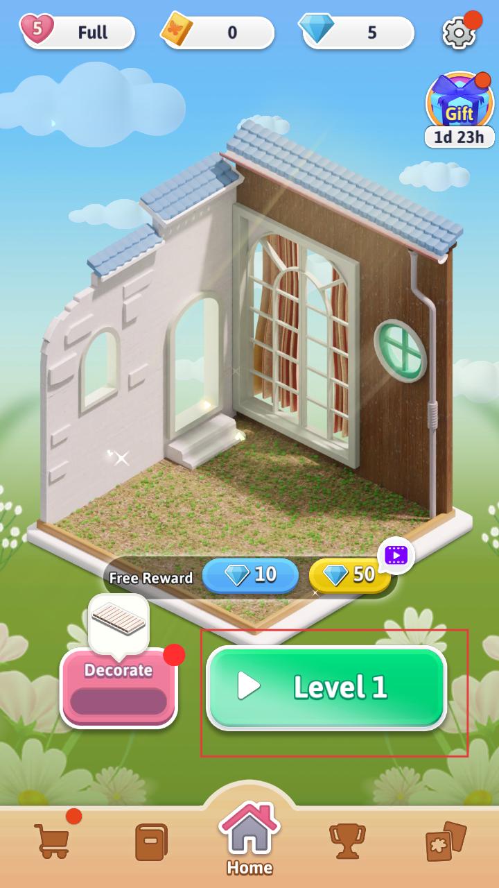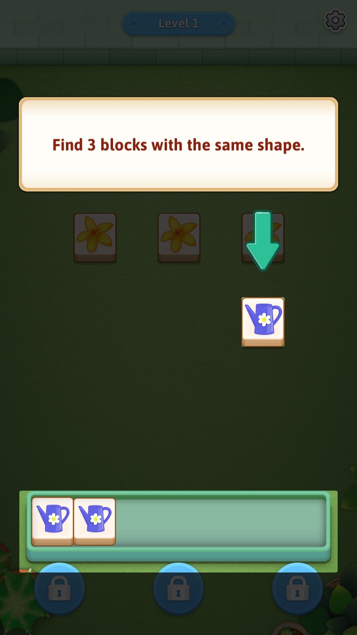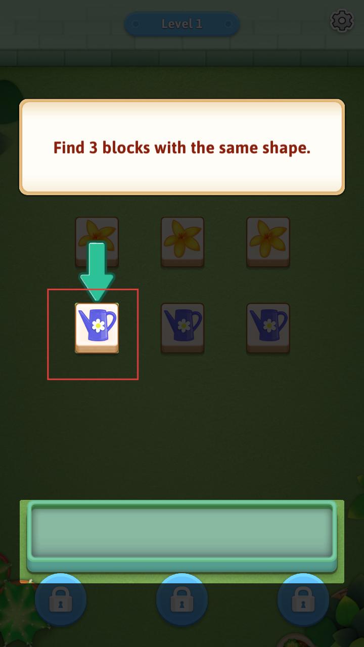 1、进入游戏,点击Level1,开启第一关的消除与园艺结合的冒险,准备开始瓷砖消除挑战。