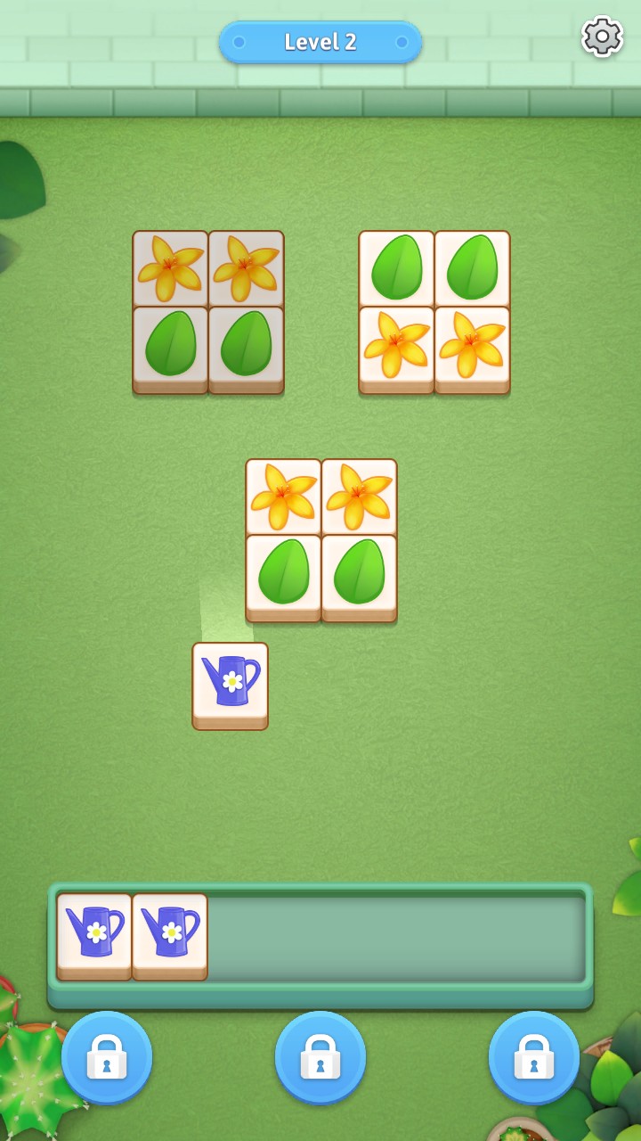 2、在关卡中按照提示,寻找3个相同形状的瓷砖,点击选中,进行消除操作,推进游戏。