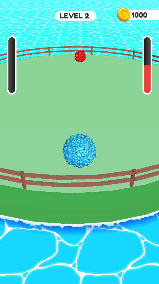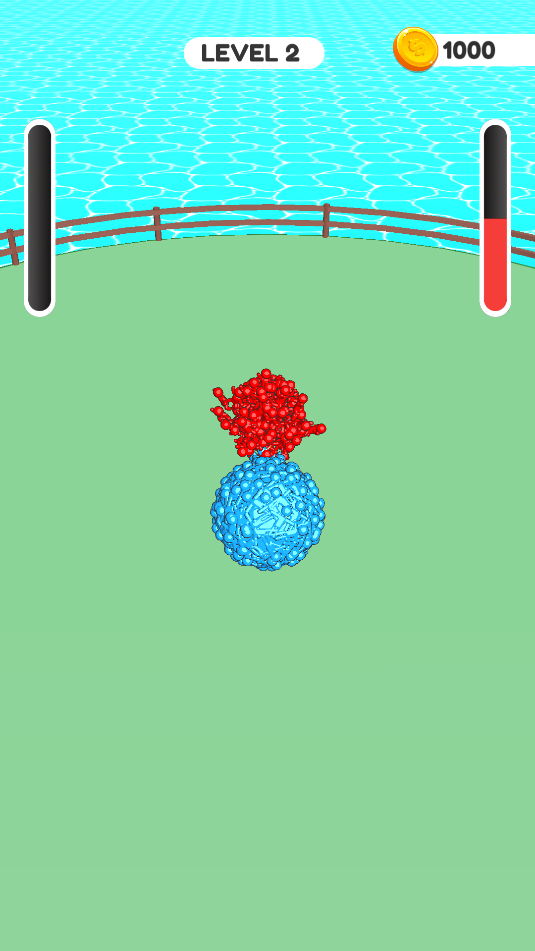 3、同样是滑动屏幕控制大球,跟红色球对碰,需把红色球撞散架即可通关。