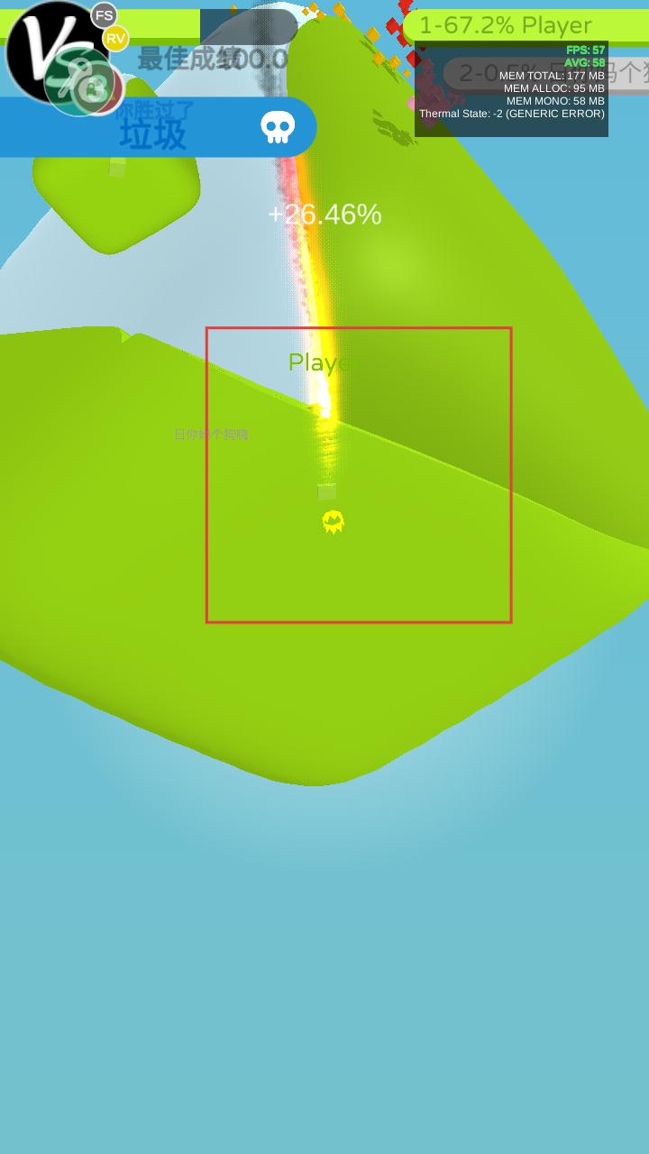2、通过灵活走位扩大绿色领土,界面会实时显示领土占比增长,如出现加26的提示,需持续抢占更多空间。