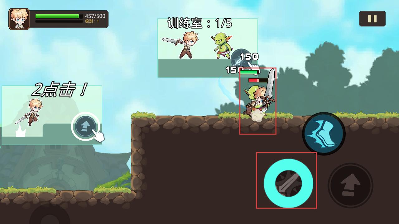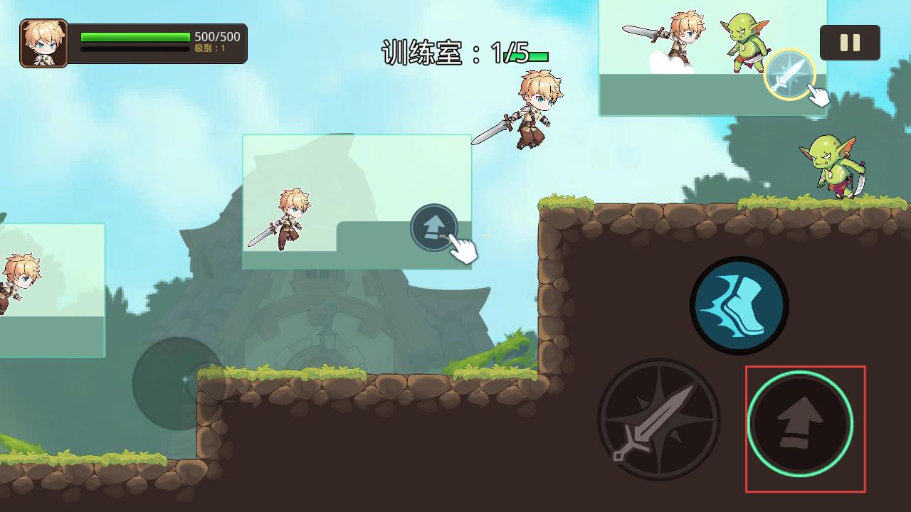 2、在训练室中可点击跳跃按键让角色跳跃,还会遇到哥布林怪物,为后续战斗和探索做好准备,体验冒险的乐趣。