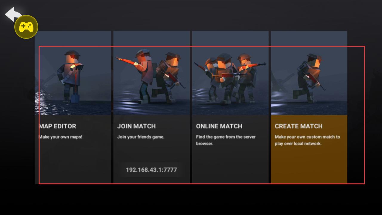 1、进入游戏可选择地图编辑、加入好友游戏、在线匹配或创建本地对战等模式,根据喜好选择后即可开启充满策略的战场战斗之旅。