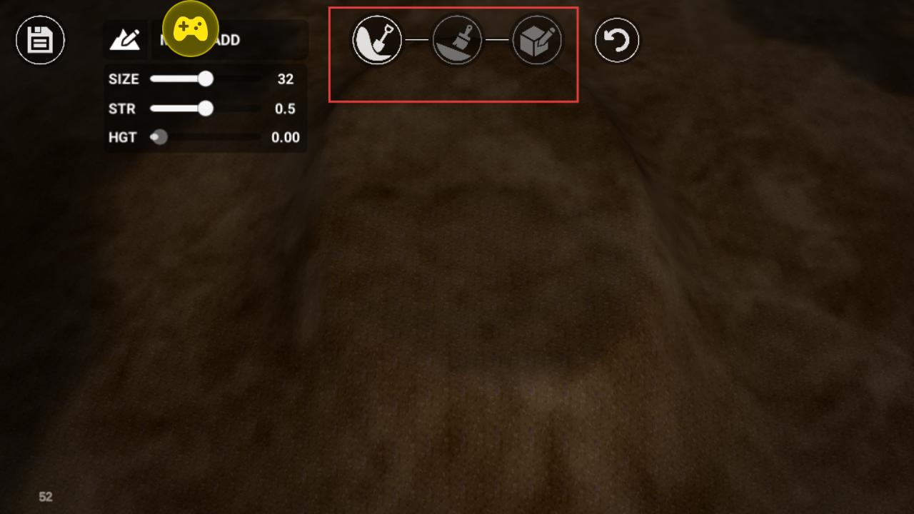 3、在地图编辑器中可使用铲子、刷子、方块等工具,调节大小、强度等参数,自由打造独特的战场地形,发挥创意设计地图。