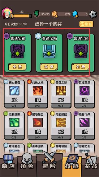 3、选择免费宝箱或技能进行购买,多样选择能获取不同技能或道具,丰富战斗流派。