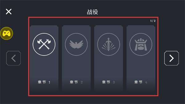 1、进入游戏后可选择战役模式,界面有章节1到4等不同章节选项,选择对应章节即可开启策略对战的战役之旅。