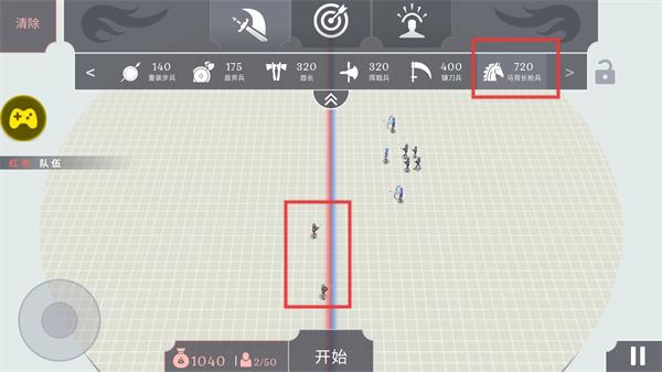 2、在战前布置界面,可从上方选择如马厩兵种等不同兵种,布置好后点击开始按钮,开启趣味对战。
