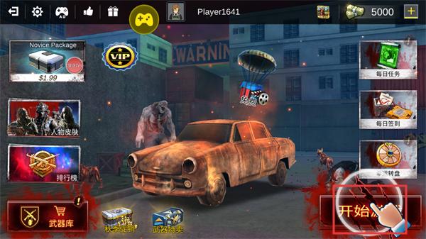 1、进入游戏后点击开始游戏,开启末日生存射击之旅,在废土场景中准备对抗各类僵尸,展开生存挑战。
