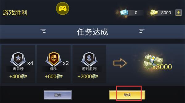 4、游戏胜利后点击继续,可获得金币等奖励,之后开启下一场战斗,在更多末日场景中挑战生存极限,提升射击技巧。