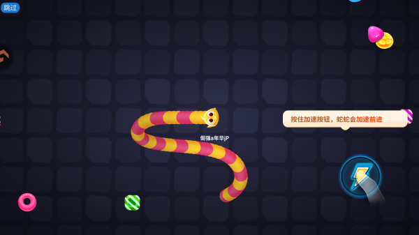 2、掌握核心操作:长按加速键可冲刺,虽消耗长度,但能用于逃生或截杀,新手建议谨慎使用节省能量。