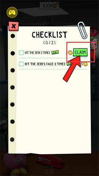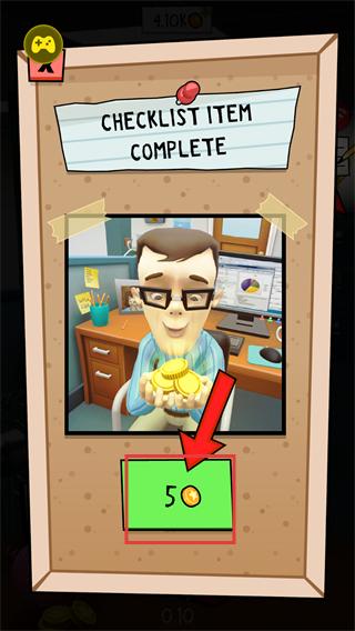 1、在清单界面点击CLAIM按钮,领取完成任务的奖励,获得金币,这些金币可用于解锁更多整蛊道具,在开放式办公环境中开展更多恶作剧。