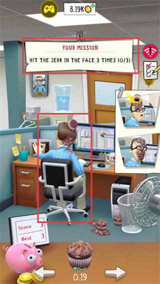 3、接到击中目标脸部三次的任务,右侧可预览搞怪效果,准备使用新的整蛊道具,在办公环境中实施恶作剧,看同事的真实反应。