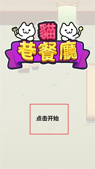 1、进入游戏看到带有猫咪元素的标题界面,点击开始即可开启萌系餐厅经营之旅,准备打造理想猫咖,享受治愈经营过程。