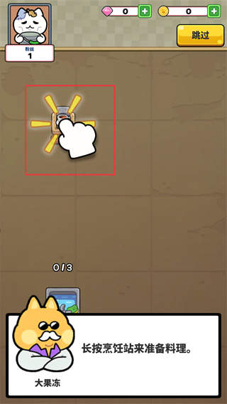 2、在经营场景中长按烹饪站准备料理,按照指引操作开启菜品制作环节,为后续餐厅经营的食材采购、菜品研发等环节奠基。