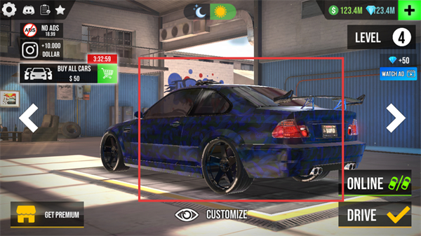 2、改装后的迷彩赛车展示完毕,点击DRIVE,进入游戏模式选择环节,准备驾驶个性化赛车开启竞速挑战。