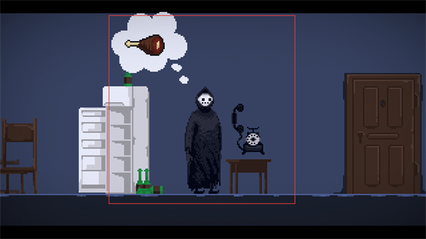 2、观察角色冒出的鸡腿想法气泡,移动到冰箱处互动,获取对应的物品来满足角色需求。
