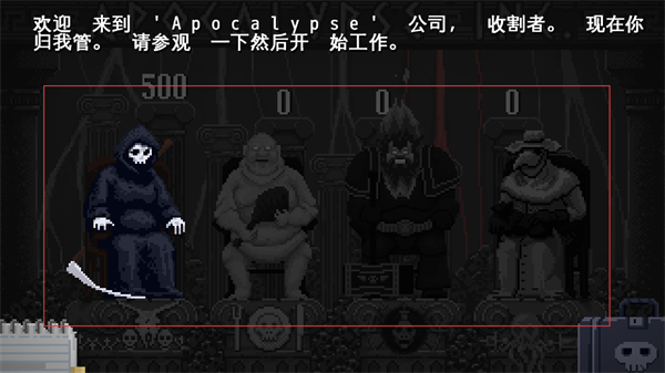3、进入Apocalypse公司场景,聆听管理者的指引,完成参观流程,准备开启正式的收割工作。