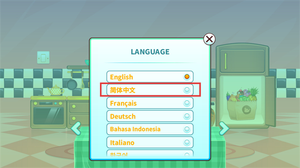3、在语言选择列表里找到简体中文选项,点击该选项将游戏语言切换为简体中文。