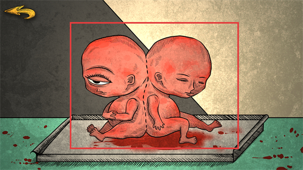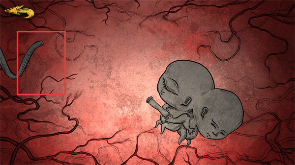 4、观察连体胎儿的画面变化,它们的状态随剧情推进改变,完成这一阶段的剧情展示。