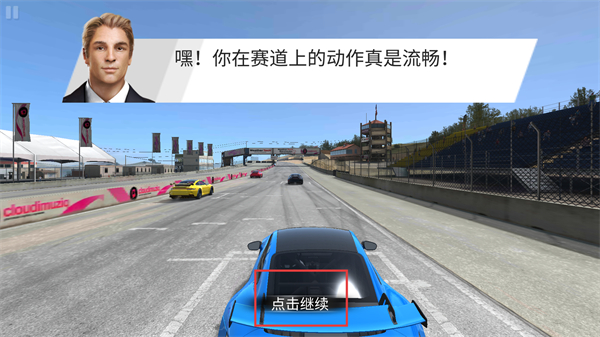 1、点击界面中的点击继续按钮,关闭当前提示弹窗,进入到赛道驾驶的实际操作环节。