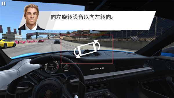 2、按照提示向左旋转设备,控制车辆向左转向,调整行驶方向以适应赛道的路线变化。